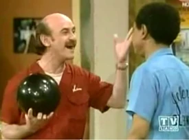 | Gil Cunningham, taunting George before their teams compete for the big trophy in the annual bowling tournament in Season 7. | ||||